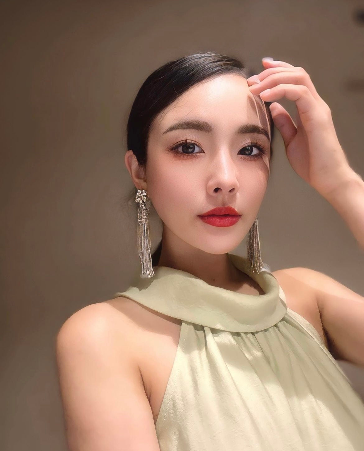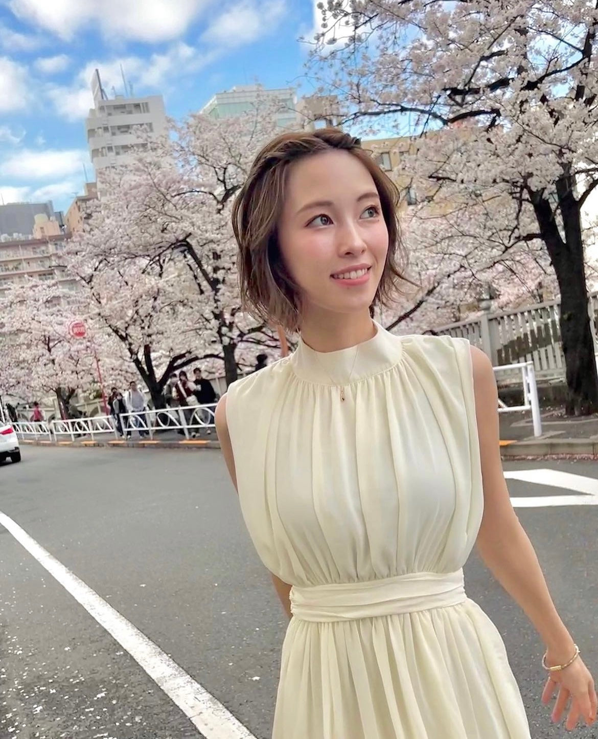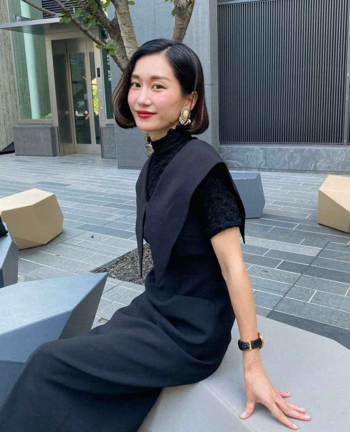 A top with a wide opening at the back. The short length at the front and long length at the back subtly covers the buttocks and makes the legs look longer. I also love the mature ribbon design. It makes you look slimmer, and the fabric is smooth but not too thin, so it's comfortable.